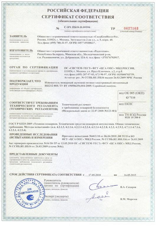 Сертификат ИП 212-88X действителен до 16.05.2015 года