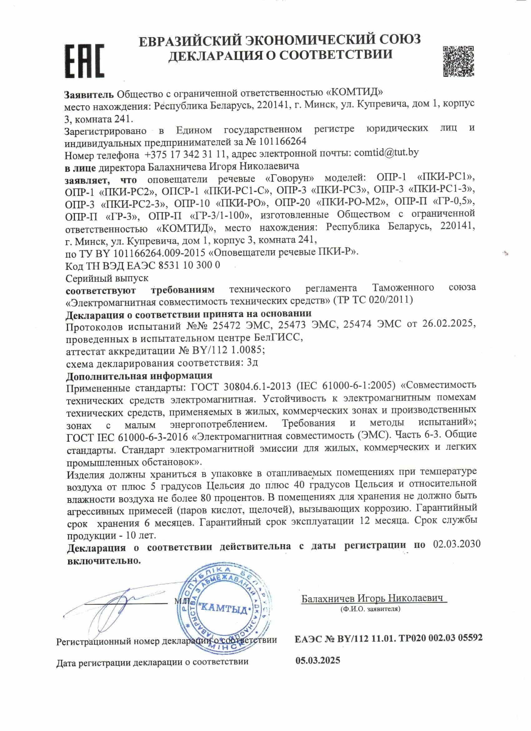 Характеристики."Говорун" ОПСР-1 "ПКИ-РС1-С".